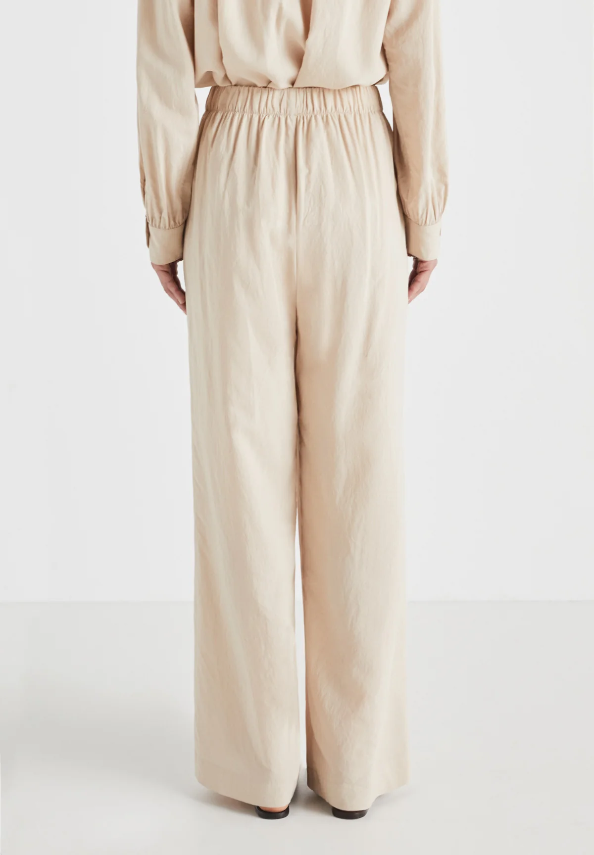 86% viscose 14% silk relaxed pants, mid rise col: nude